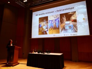 We got the great opportunity to present our 𝐥𝐚𝐬𝐞𝐫-𝐛𝐚𝐬𝐞𝐝 𝐚𝐢𝐫 𝐪𝐮𝐚𝐥𝐢𝐭𝐲 𝐚𝐧𝐚𝐥𝐲𝐳𝐞𝐫 – developed by Ulm University with lasers provided by Alpes Lasers – on our exhibition booth. Even more, we stressed the importance of 𝐠𝐚𝐬 𝐚𝐧𝐚𝐥𝐲𝐬𝐢𝐬 𝐢𝐧 𝐮𝐧𝐝𝐞𝐫𝐠𝐫𝐨𝐮𝐧𝐝 𝐦𝐢𝐧𝐞𝐬 in our talk, given by Dr. Lisa Sophie Walter, as well as the system architecture and working principle of the gas analyzer in a poster presented by Fahd Alsebaey.